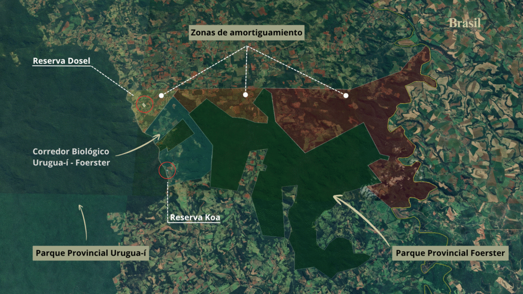 Nuestra ubicación estratégica en la zona de amortiguamiento del Corredor Biológico Urugua-í – Foerster nos permite contribuir de manera acertada a su conservación mediante la adquisición de tierras para su regeneración e incorporación a las áreas protegidas ya existentes.